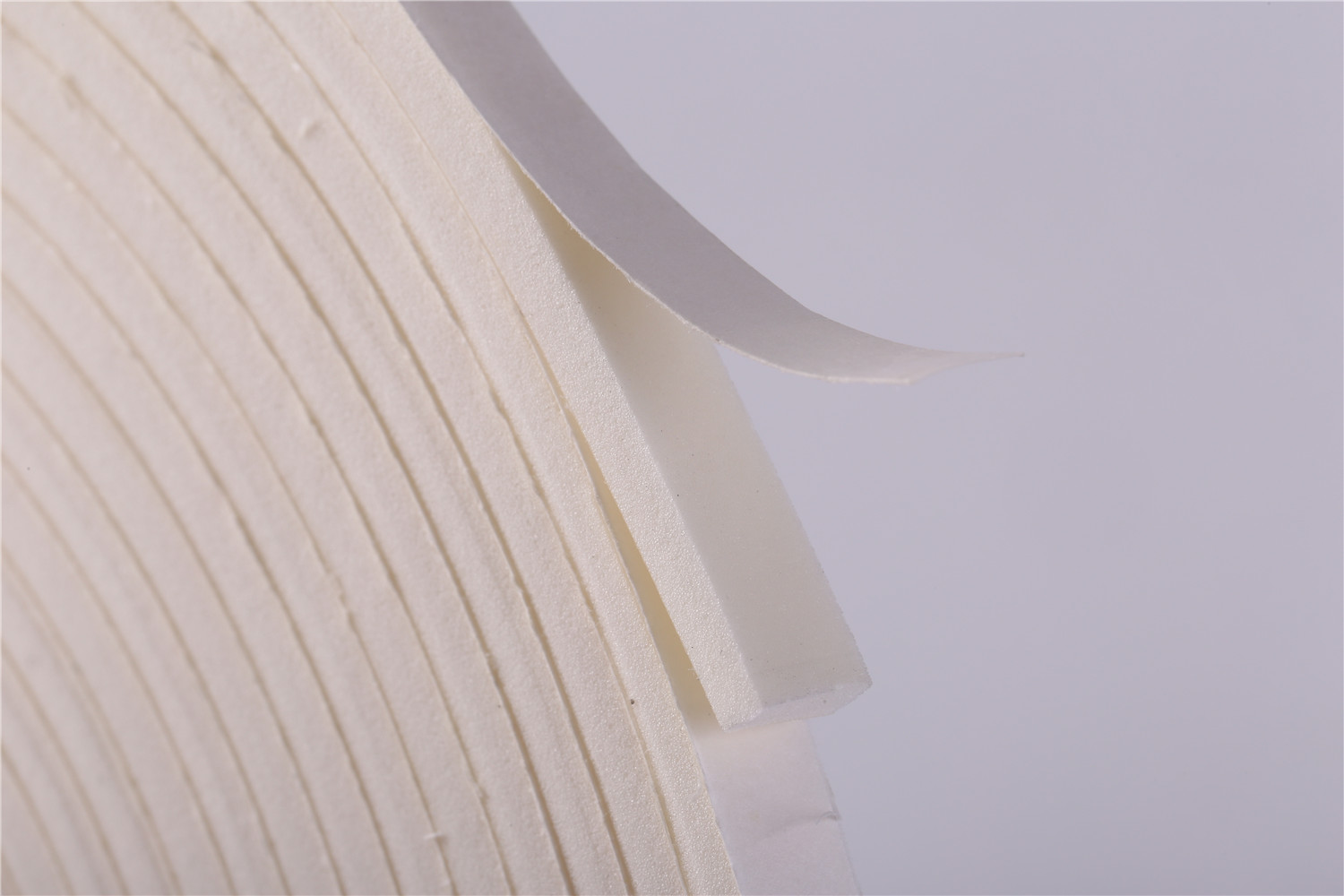 Low density self adhesive PVC foam tape of Polyvinyl Chloride plastic as the main raw material, through high temperature mixing, adding foaming agent, auxiliary agent and other raw materials to make the independent closed-hole foaming material.The foam sealant combines a closed-cell polyvinyl chloride foam substrate with a pressure-sensitive adhesive on both sides.The appearance is smooth,the bubble hole structure is more subtle, press back to play slowly. It has the excellent properties of toughness, heat insulation, sound insulation, high resistance to corrosion, good resilience, small absorption of water, conductive or antistatic.Sanhe foam performance in the window glazing market has made it the good choice in a kind of glazing applications.