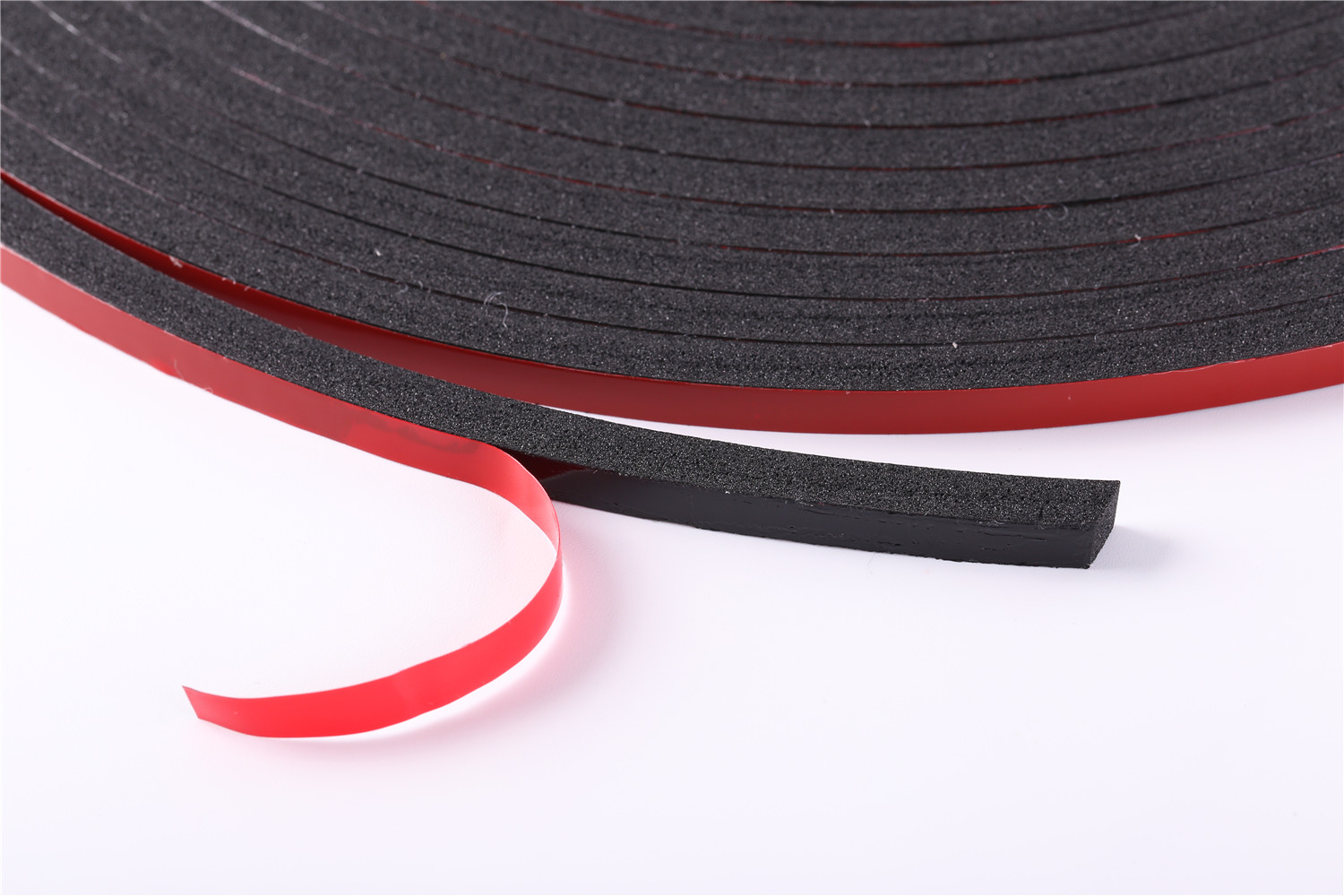 High density double-sided red film PVC foam tape of Polyvinyl Chloride plastic as the main raw material, through high temperature mixing, adding foaming agent, auxiliary agent and other raw materials to make the independent closed-hole foaming material.The foam sealant combines a closed-cell polyvinyl chloride foam substrate with a pressure-sensitive adhesive on both sides.The appearance is smooth,the bubble hole structure is more subtle, press back to play slowly. It has the excellent properties of toughness, heat insulation, sound insulation, high resistance to corrosion, good resilience, small absorption of water, conductive or antistatic.Sanhe foam performance in the window glazing market has made it the good choice in a kind of glazing applications.