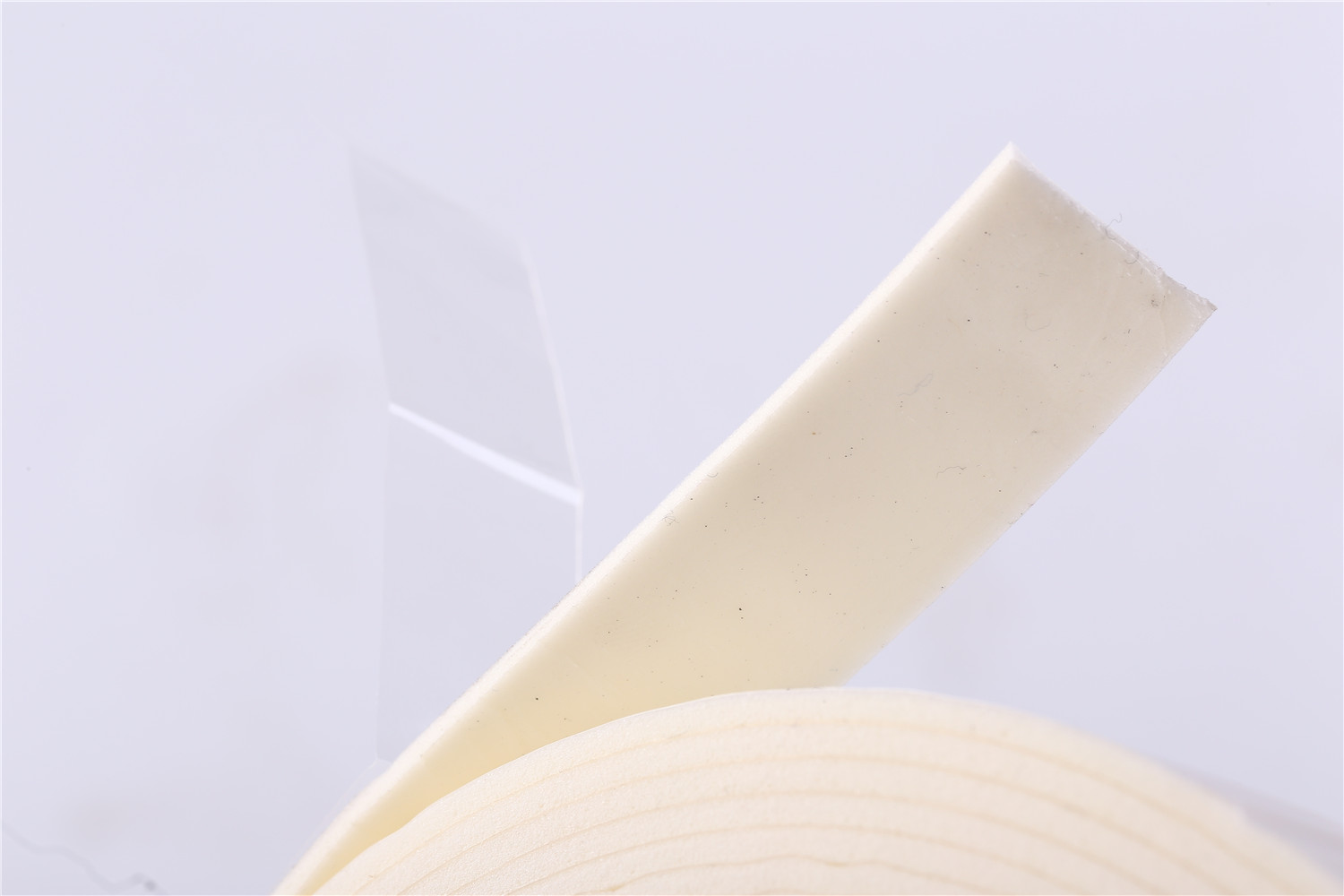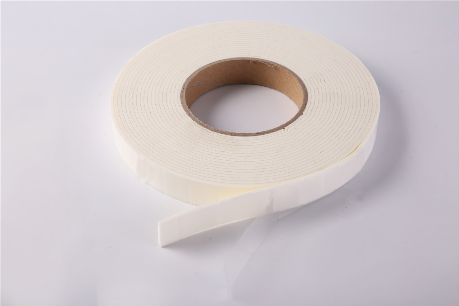 White PVC sealing tape with PET film of Polyvinyl Chloride plastic as the main raw material, through high temperature mixing, adding foaming agent, auxiliary agent and other raw materials to make the independent closed-hole foaming material.The foam sealant combines a closed-cell polyvinyl chloride foam substrate with a pressure-sensitive adhesive on both sides.The appearance is smooth,the bubble hole structure is more subtle, press back to play slowly. It has the excellent properties of toughness, heat insulation, sound insulation, high resistance to corrosion, good resilience, small absorption of water, conductive or antistatic.Sanhe foam performance in the window glazing market has made it the good choice in a kind of glazing applications.