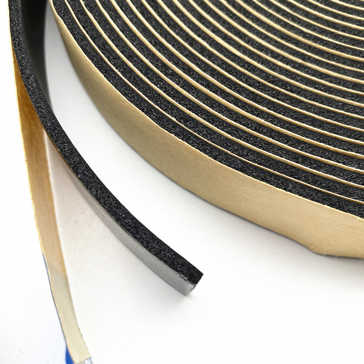 Rubber insulation tape is a closed-cell, flexible NBR / PVC based, elastic foam insulation tape with a factory applied pressure sensitive adhesive that bonds firmly and forms and has a long lasting bond. It can be used with closed-cell rubber duct insulation to prevent condensation on the joints of the duct insulation.